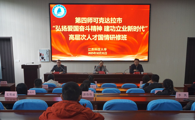 10月31日,新疆生产建设兵团第四师可克达拉市“弘扬爱国奋斗精神,建功立业新时代”高层次人才国情研修班在我校开班。来自师市的40名各领域的高层次人才、业务骨干和人才工作者齐聚镇江,将开启为期7天的国情研修之旅。江苏科技大学党委常委、副校长任南,第四师可克达拉市党委组织部副部长张惠出席开班仪式,仪式由继续教育学院院长仲崇光主持。