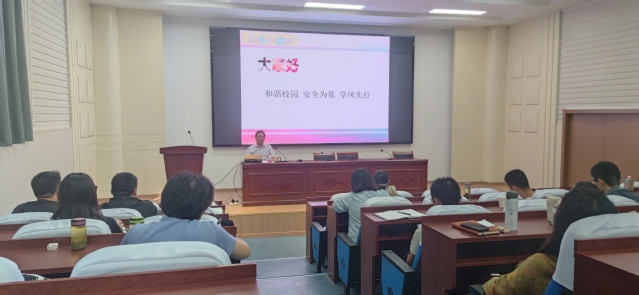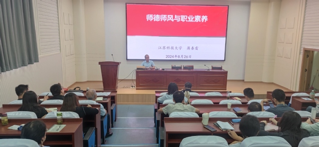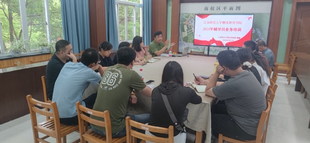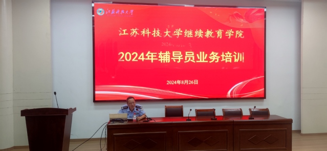 为贯彻落实《普通高等学校辅导员队伍建设规定》(教育部令第 43 号)和《江苏科技大学辅导员管理办法》(江科大委〔202414 号)等文件精神,加强我院辅导员队伍专业化、职业化建设,提高辅导员的理论水平、职业能力和专业素养,促进学生教育管理水平的提升,院学工办开学初组织全体辅导员开展2024年辅导员业务能力培训。校安全保卫处处长徐晶、继续教育学院院长仲崇光、副院长季风、学工办主任蒋春雷、全体辅导员以及市公安局内保支队领导、公寓管理中心负责人等参加培训活动,活动由学工办主任蒋春雷主持。
