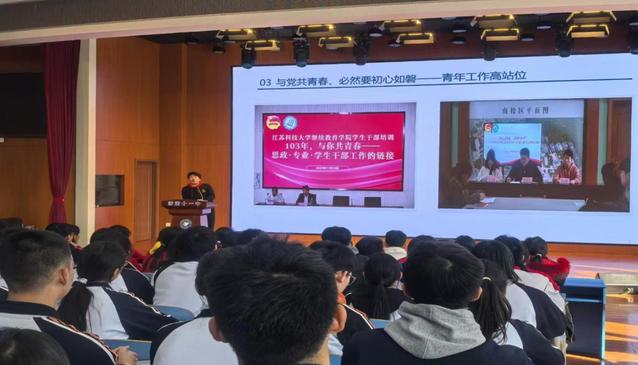 讲座中,他结合自身从高中生成长为高校学生骨干经历,围绕“选择与坚持”“责任与担当”“创新与实践”三大主题,讲述求学挑战与成长,通过案例展现青年将个人理想融入时代发展的精神风貌。详细地介绍了江苏科技大学百年“船魂精神”及继续教育学院实践育人成果,并与学生就专业选择、生涯规划等话题互动交流。
