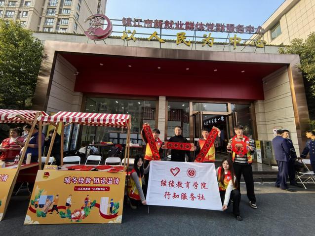 2026年1月16日下午,江苏共青团“小哥服务日”示范活动在镇江市新就业群体党群服务中心举行。作为我院2026年大学生寒假社会实践活动重要组成部分,行知服务社积极响应号召,组织志愿者参与本次服务,在春节前夕为快递员、外卖配送员、网约车司机等新就业群体青年送上诚挚的节日问候与暖心陪伴,共青团江苏省委、共青团镇江市委等相关部门及领导参与此项活动。
