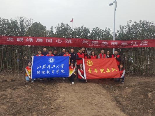 春风又绿江南岸,护绿成林正当时。在第48个植树节来临之际,3月11日下午,继续教育学院学生志愿者应邀参加由扬中市政府与长江航运公安局镇江分局联合举办的“忠诚绿屏同心筑·共建美丽三江湾”2026年植树节主题活动。此次活动是校地双方深化战略合作、协同推进长江大保护的又一次生动实践,也是学院服务地方生态文明建设的集中展示。