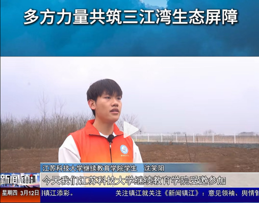春风又绿江南岸,护绿成林正当时。在第48个植树节来临之际,3月11日下午,继续教育学院学生志愿者应邀参加由扬中市政府与长江航运公安局镇江分局联合举办的“忠诚绿屏同心筑·共建美丽三江湾”2026年植树节主题活动。此次活动是校地双方深化战略合作、协同推进长江大保护的又一次生动实践,也是学院服务地方生态文明建设的集中展示。